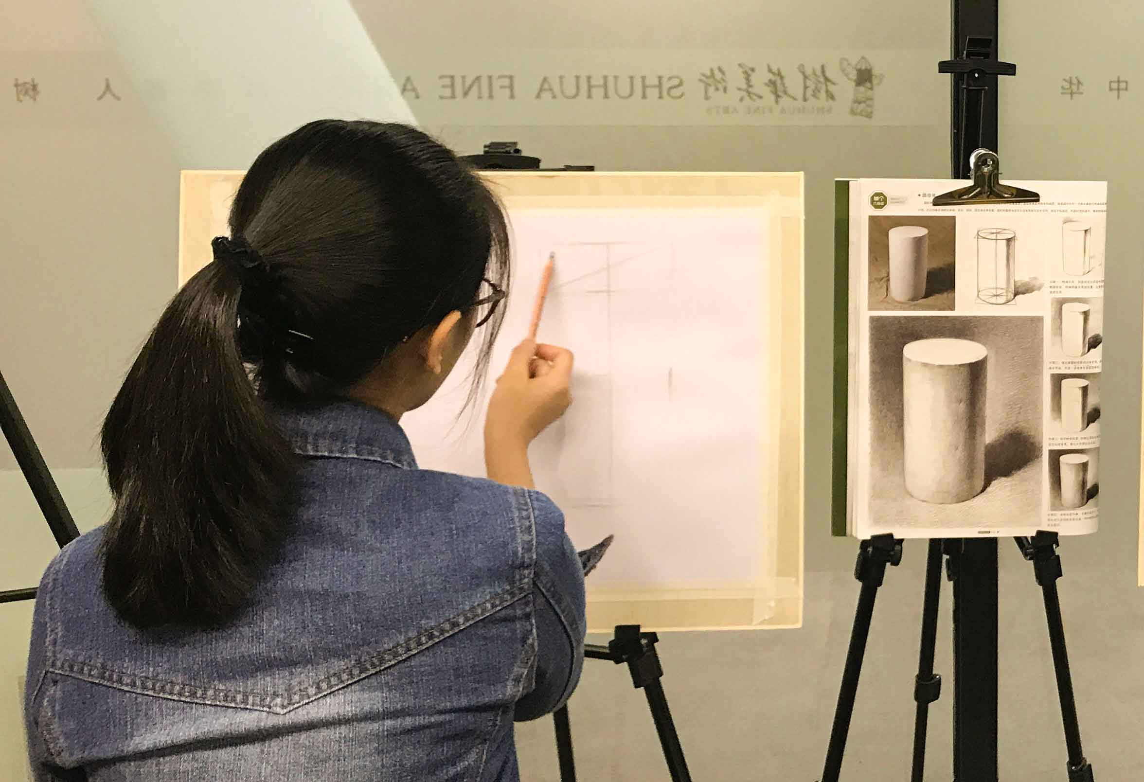 通過(guò)臨摹與寫(xiě)生結(jié)合的方式,對(duì)幾何體、靜物、風(fēng)景、人物進(jìn)行全方位的學(xué)習(xí)。理論與實(shí)踐相結(jié)合,老師全程示范、講解、改畫(huà)。