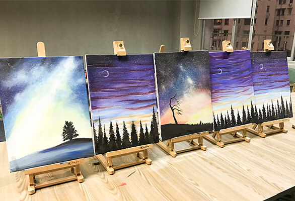 前期以簡單的風(fēng)景畫入手,慢慢過渡到簡單的靜物和動(dòng)物繪畫訓(xùn)練,從中講解一定的色彩知識(shí)理論及素描基礎(chǔ),再進(jìn)入復(fù)雜的動(dòng)物和人物的階段性油畫訓(xùn)練。