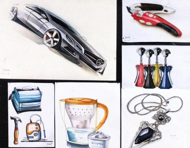 從設(shè)計素描入手,分析工業(yè)設(shè)計常見元素,解析產(chǎn)品構(gòu)造結(jié)構(gòu),學(xué)會運用工業(yè)設(shè)計知識,加強手繪和軟件的練習(xí)。