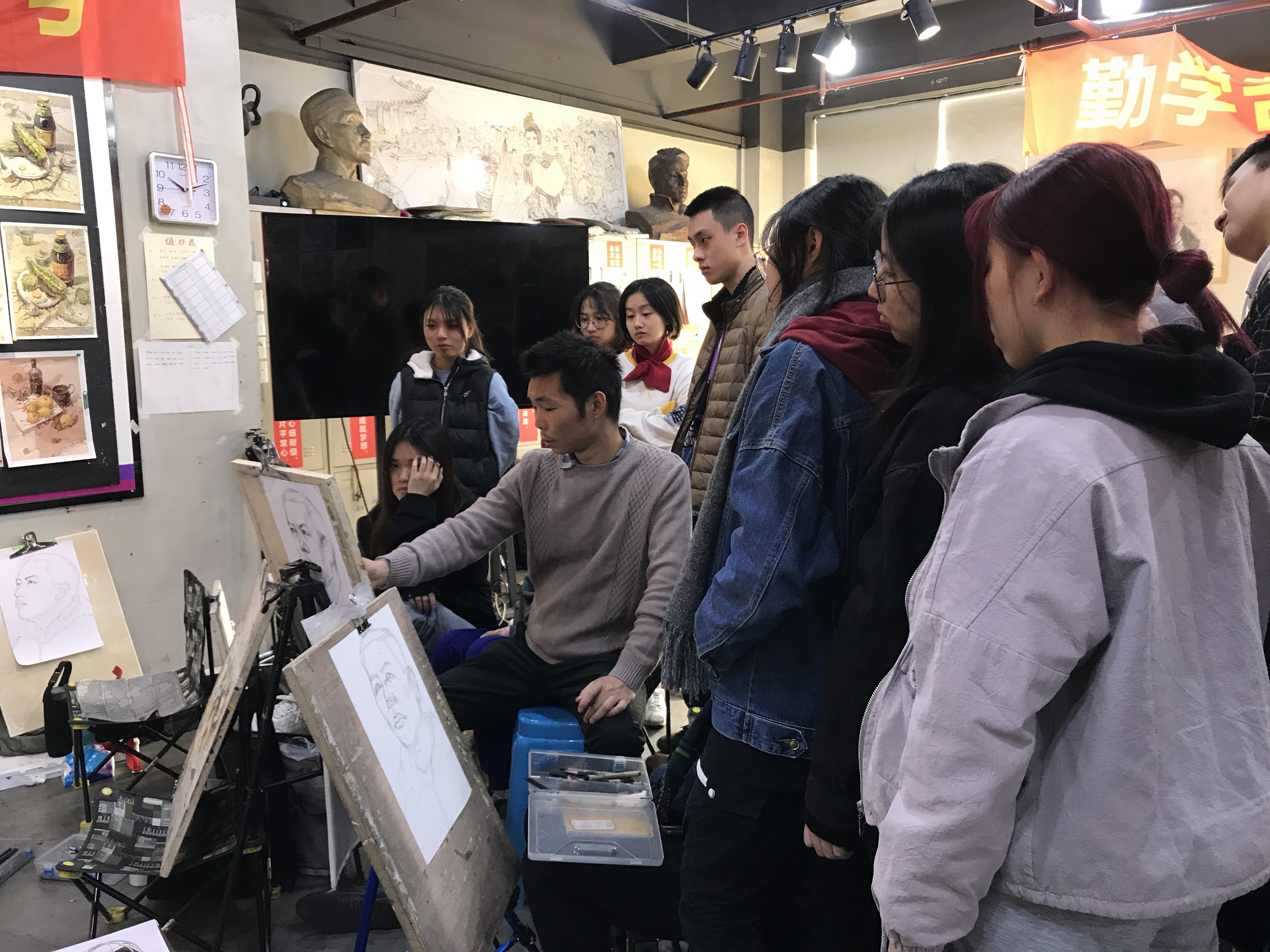 素描人物(頭像、半身像、全身像)、線性頭像、色彩(頭像、胸像)、速寫(創(chuàng)作、單人、組合、場景)、大師臨摹